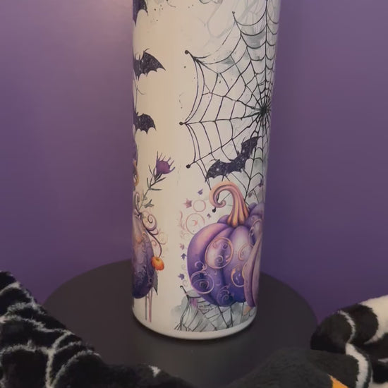 Embrace the spooky charm of the season with our Witchy Highland Cow Halloween Tumbler. This 20 oz insulated tumbler features a mystical highland cow wearing a starry witch hat, surrounded by purple pumpkins, gothic roses, and intricate spiderwebs — the perfect mix of whimsy and gothic for Halloween lovers.